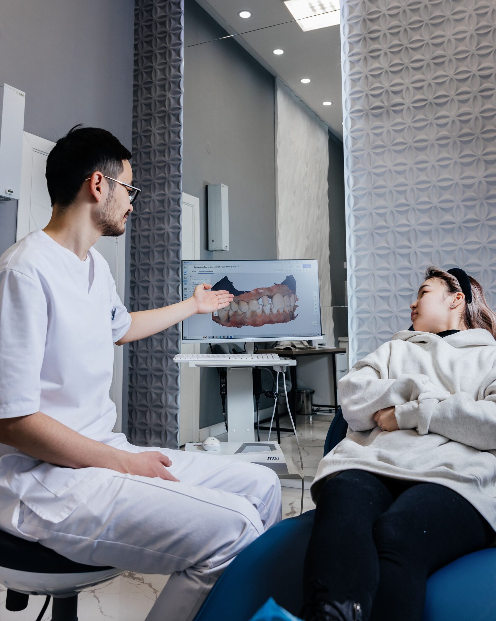 Хирург-имплантолог визуально осматривает полость рта, чтобы определить клиническую ситуацию, состояние зубов, слизистой и десен. Расспрашивает пациента об имеющихся хронических заболеваниях, жалобах, вредных привычках, принимаемых медицинских препаратов. Отвечает на имеющиеся вопросы. Озвучивает варианты и сроки лечения.